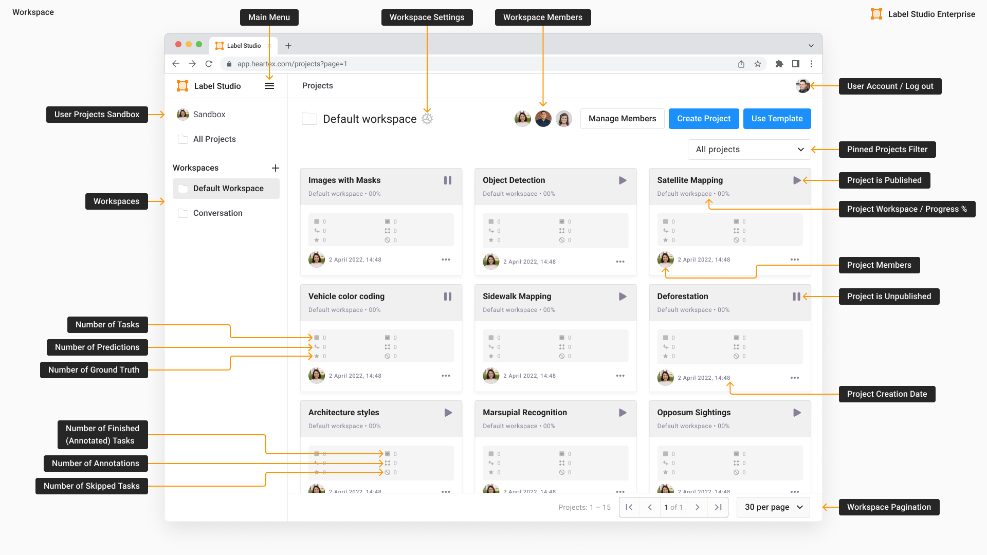 Label Studio is an open source data labeling tool that supports multiple projects, users, and data types in one platform. It allows you to do the following: